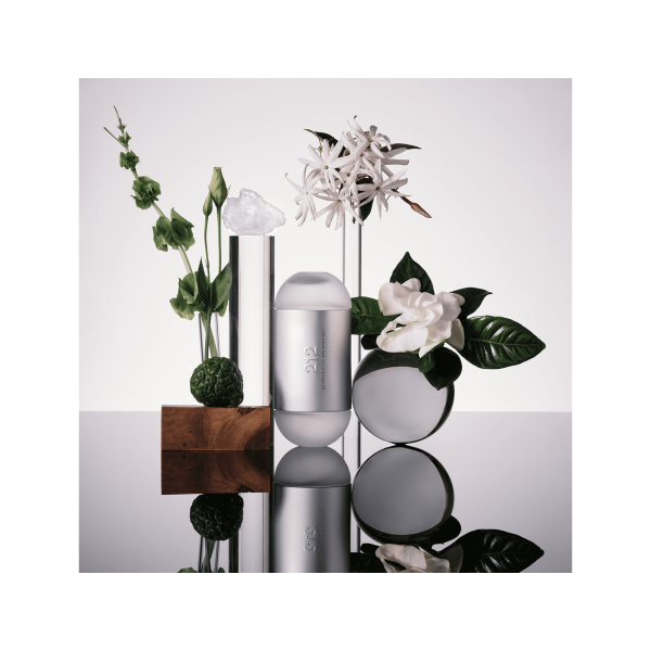 Cosmopolita, urbana e innovadora. 212 es el código telefónico de Manhattan. Un perfume fresco y moderno que conserva un toque femenino y delicado. El frasco: un doble juego funcional y atrevido compuesto por 2 frascos en uno, uno para la casa, el otro para viajar. Las notas de salida son cítricas, se suavizan con la gardenia y finalizan con el toque sensual de maderas y musgo.