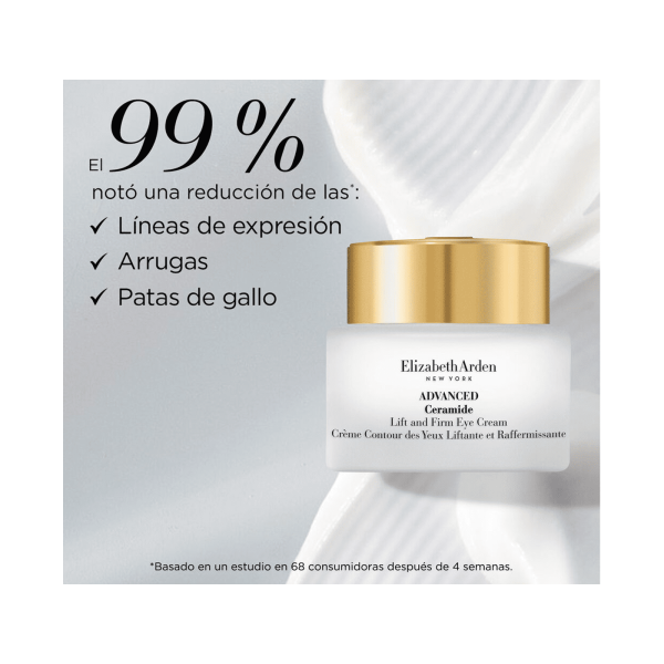 Presentamos Advanced Ceramide Lift and Firm Firm Eye Cream, una crema sedosa, liviana y de rápida absorción ahora con 5 veces más Ceramide para reponer lo que la piel necesita pero que pierde con el tiempo. Esta crema reafirmante para ojos presenta nuestra tecnología 3D FIT que desafía la edad para reafirmar, hidratar intensamente y reafirmar. Desarrollado con ceramidas, tetrapéptidos y extracto de Edelweiss para ojos visiblemente levantados, más firmes y de apariencia más joven en solo 2 semanas. La crema para ojos antiarrugas, sedosa y de rápida absorción, brinda hidratación durante todo el día para disminuir visiblemente las líneas de expresión, las arrugas, las patas de gallo y la hinchazón.Mejores para el medio ambiente, nuestras nuevas cremas se envasan de forma sostenible en un material reciclado posconsumo elegante y de bajo perfil.