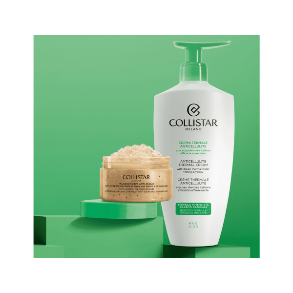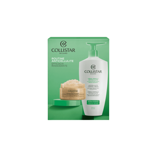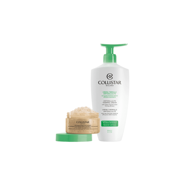En este set de edición limitada, Collistar le ofrece dos productos específicos que se pueden utilizar en combinación para una rutina corporal de remodelación eficaz: primero, exfolia, alisa y prepara la piel, luego trata para actuar sobre las imperfecciones de la celulitis.Paso 1 – EXFOLIA THALASSO-SCRUB ANTIAGUALas sales marinas y el azúcar moreno suavizan y revitalizanCombina los beneficios de la talasoterapia con los de la aromaterapiaPaso 2 - Anticelulítico CREMA TÉRMICA ANTICELULITICAAprovecha los beneficios descongestionantes y antioxidantes del agua termal Acción específica e intensiva sobre la celulitis, la piel de naranja y la pérdida de tono.Textura sensorial y de masaje, incluso profesional.