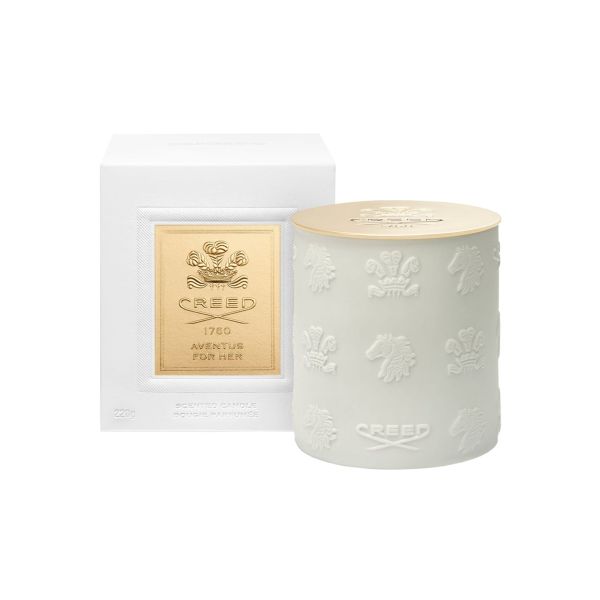 Complete cualquier espacio con el encantador aroma de Aventus For Her con una exquisita vela vertida a mano. Llene su hogar con el encantador aroma de Aventus For Her con una exquisita vela vertida a mano de The House of Creed. Esta poderosa fragancia floral y afrutada es una celebración de las mujeres pioneras y aporta a cualquier espacio el ligero toque aromático de la pimienta rosa y el cautivador aroma del almizcle. Creada y envasada a mano en Francia, cada vela está envuelta en la porcelana blanca más exquisita, adornado con el logotipo de la casa y coronada con una preciosa tapa de zamac dorado. Esto la convierte en una refinada pieza decorativa para cualquier hogar. Los elementos más finos de la naturalezaLos artesanos de The House of Creed se han procurado de los elementos más selectos de la naturaleza para sus velas de porcelana. Cada creación está fondeada con una materia prima natural seleccionada con cuidado y característica de sus fragancias Millésime, dejando una poderosa estela distintiva y de calidad Creed. Cada vela se inspira en los viajes por todo el mundo y transporta los sentidos a un oasis de serenidad con sus aromas envolventes. Cómo cuidar su velaUn cuidado especial de su vela prolongará su vida y su propio disfrute. Un tiempo de quemado inicial de tres horas es recomendable para permitir una fusión uniforme de la cera. Las futuras quemas deben durar de dos a tres horas con una duración máxima de cuatro horas. Antes de cada encendido, corte el final de la mecha un poco antes de volver a centrarla y utilice un apagavelas para apagar la llama. Contenido: 220g