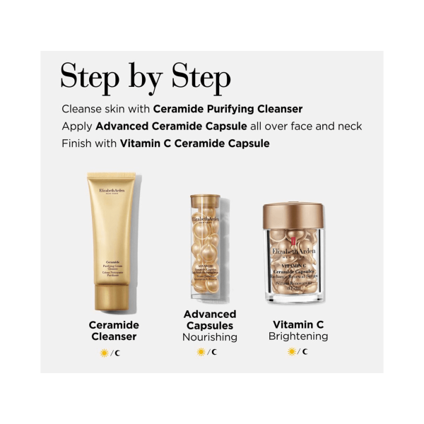 ¡Sorprende al amante de la belleza de tu lista con este regalo! Nuestro set antienvejecimiento Making Spirits Bright presenta el poder iluminador de Vitamin C Ceramide Capsules Radiance Renewal Serum para una piel visiblemente más brillante después de un solo uso. Nuestro suero de vitamina C está encapsulado y es 178 veces más potente que la vitamina C1 tradicional. El set de regalo para el cuidado de la piel también incluye nuestra Ceramide Purifying Cream Cleanser, una loción enriquecida con humectación para dejar la piel con una sensación suave y limpia, y Advanced Ceramide Capsules Daily Youth Restoring Serum para reparar la barrera de la piel y mejorar la retención de humectación.Este set incluye:Cápsulas de ceramida con vitamina C Sérum renovador de luminosidad (30 piezas) Advanced Ceramide Capsules Daily Youth Restoring Serum (14 piezas) Crema limpiadora purificante de ceramida (1.7 oz)
