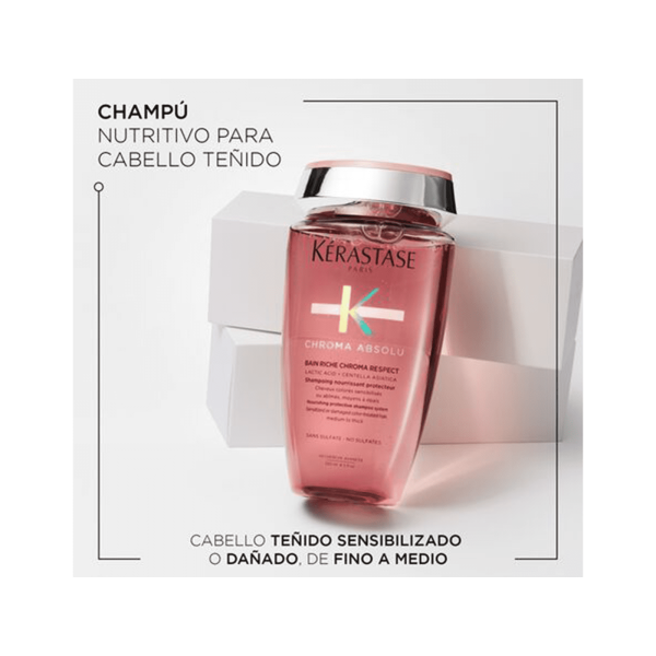 Champú protector y nutritivo para cabellos coloreados, sensibles o dañados. Su fórmula altamente nutritiva cuida los cabellos de medios a gruesos respetando y preservando su color. Sin sulfatos.Beneficios del productoUna fórmula rica que limpia y nutre el cabello al mismo tiempo que respeta profundamente la fibra para proteger el color de la decoloración.Nutre el cabello hasta un +95 %* y reduce la porosidad para mantener el color durante más tiempoConserva el 92 % de la intensidad del color después de 6 semanas** Proporciona un 65% más de brillo*** Transforma la superficie de la fibra para una suavidad inmediata y reduce el encrespamientoIngredientes principalesÁcido lácticoEste ácido cicatrizante ayuda a crear una película lipídica en la superficie del cabello para darle más brillo.Centella AsiáticaUna antigua planta regenerativa conocida por sus propiedades cicatrizantes.