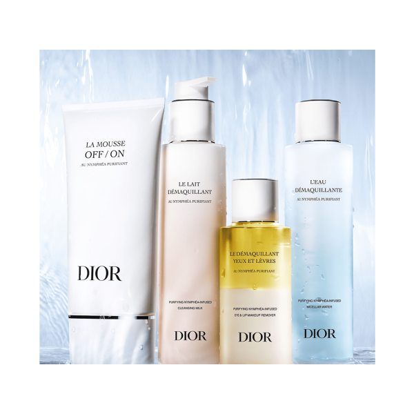 TIME TO SWITCH! Dior ha creado la Leche Limpiadora, compuesta por un 96 % de ingredientes de origen natural, que desmaquilla la piel y revela su pureza natural. OFF = desmaquilla suavemente, elimina las impurezas y las partículas de contaminación. ON = hidrata, refuerza y alivia la sensación de incomodidad de la piel. Esta leche limpiadora combina la riqueza de un aceite con la fluidez de una leche para un desmaquillado delicado. Su fórmula está enriquecida con nenúfar blanco, conocido por sus propiedades purificantes, así como con glicerina y cera de jazmín nutritiva. Permite un desmaquillado suave y eficaz que refuerza la barrera cutánea. Uso diario, por la mañana y por la noche, sola o antes de La Mousse OFF/ON para una doble limpieza.