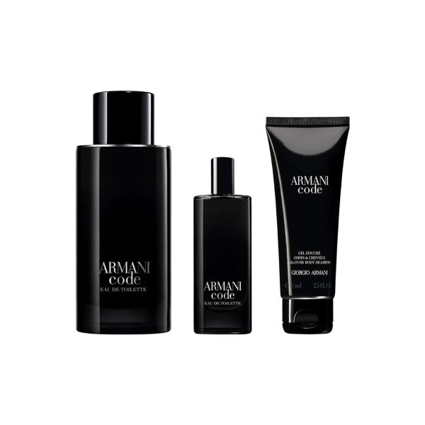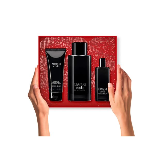 Armani Beauty rinde homenaje a su herencia de alta costura con un set de edición limitada especialmente inspirado y reinterpretado a partir de uno de los icónicos patrones de ginkgo de Giorgio Armani. Retira la funda con relieve de primavera para descubrir este set de regalo de 3 piezas, que incluye el icónico Armani Code Eau de Toilette. Un regalo de perfección, como él. El set se compone de una fragancia de 125 ml, una fragancia de 15 ml y un gel de ducha de 75 ml de Armani Code Eau de Toilette. Su fragancia característica es una imagen olfativa de amor y alegría expresada por notas de acordes cítricos y habas tonka torcidas entrelazadas con un corazón de lavandín. Con una visión de lujo consciente, los sets están completamente libres de plásticos y diseñados para durarEste set de regalo de 3 piezas incluye:- Armani Code Eau de Toilette 125 ml- Armani Code Eau de Toilette 15 ml- Armani Code Eau de Toilette 75 ml Gel de ducha