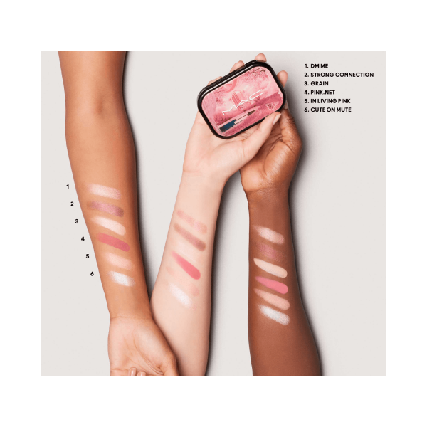 Tonos rosados: romantizados. Esta paleta de sombras de ojos floral de seis partes presenta un color lleno de pigmentos en una sola pasada para lograr looks ilimitados que se pueden llevar puestos o caprichosos. Este ramo fresco de rosas suaves, beiges y marrones presenta una textura liviana y suave como la seda en una gama de acabados mate, brillante, brillante y metálico. Nuestra fórmula, la primera en su tipo, se funde a la perfección en los párpados, lo que permite una aplicación, una capacidad de construcción y una mezcla sin esfuerzo a medida que personalizas tus ojos a tu manera. Nuestra sombra de ojos más pigmentada hasta la fecha está formulada con hasta un 25% más de carga de pigmento en comparación con las paletas de sombras de ojos M·A·C anteriores.BeneficiosColor lleno de pigmentos en una pasadaTextura ligera y suave como la seda.Mezcla uniforme y perfectaFormulado con hasta un 25% más de carga de pigmento en comparación con las paletas de sombras de ojos M·A·C anterioresSeguro para usuarios de lentes de contactoProbado por oftalmólogosPuede usarse mojado o secoMojado para intensificar para usar todo el día, 8 horasHúmedo para intensificar para un color resistente a las arrugas y a las manchas