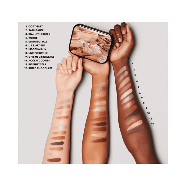 Verdaderos nudes: dimensionalizados. Esta paleta de sombras de ojos de 12 bandejas, universalmente favorecedora, presenta colores llenos de pigmentos en una sola pasada para looks mínimos a máximos ilimitados. Esta línea de colores neutros y esenciales presenta una textura liviana y suave como la seda en una variedad de acabados mate, brillante, brillante y metálico. Nuestra fórmula, la primera en su tipo, se funde a la perfección en los párpados, lo que permite una aplicación, una capacidad de construcción y una mezcla sin esfuerzo a medida que personalizas tus ojos a tu manera. Nuestra sombra de ojos más pigmentada hasta la fecha está formulada con hasta un 25% más de carga de pigmento en comparación con las paletas de sombras de ojos M·A·C anteriores.BeneficiosColor lleno de pigmentos en una pasadaTextura ligera y suave como la seda.Mezcla uniforme y perfectaFormulado con hasta un 25% más de carga de pigmento en comparación con las paletas de sombras de ojos M·A·C anterioresSeguro para usuarios de lentes de contactoProbado por oftalmólogosPuede usarse mojado o secoMojado para intensificar para usar todo el día, 8 horasHúmedo para intensificar para un color resistente a las arrugas y a las manchas