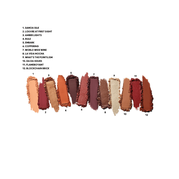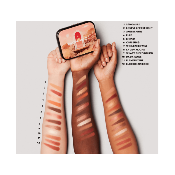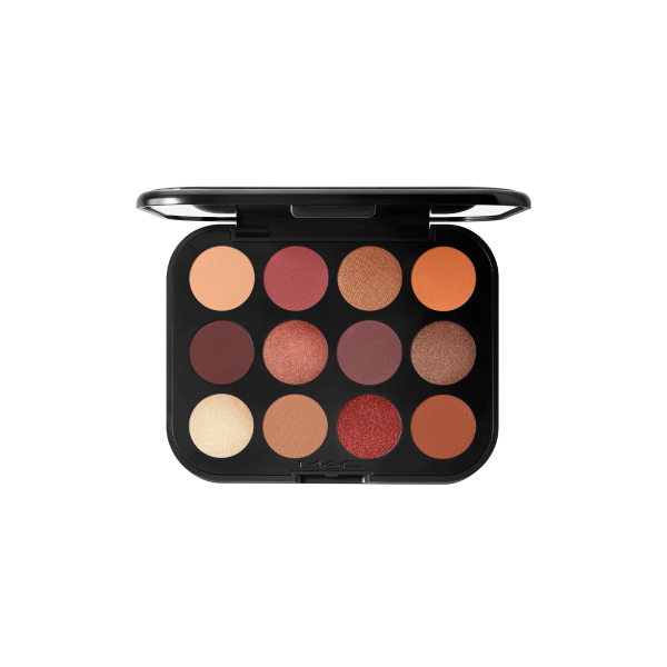 Tonos ardientes: intensificados. Esta deslumbrante paleta de sombras de ojos de 12 bandejas presenta colores llenos de pigmentos en un solo golpe para una apariencia chic ilimitada a acalorada. Esta chispeante selección de cálidos cobres, ocres y ámbar presenta una textura liviana y suave como la seda en una gama de acabados mate, brillante, brillante y metálico. Nuestra fórmula, la primera en su tipo, se funde a la perfección en los párpados, lo que permite una aplicación, una capacidad de construcción y una mezcla sin esfuerzo a medida que personalizas tus ojos a tu manera. Nuestra sombra de ojos más pigmentada hasta la fecha está formulada con hasta un 25% más de carga de pigmento en comparación con las paletas de sombras de ojos M·A·C anteriores.BeneficiosColor lleno de pigmentos en una pasadaTextura ligera y suave como la seda.Mezcla uniforme y perfectaFormulado con hasta un 25% más de carga de pigmento en comparación con las paletas de sombras de ojos M·A·C anterioresSeguro para usuarios de lentes de contactoProbado por oftalmólogosPuede usarse mojado o secoMojado para intensificar para usar todo el día, 8 horasHúmedo para intensificar para un color resistente a las arrugas y a las manchas