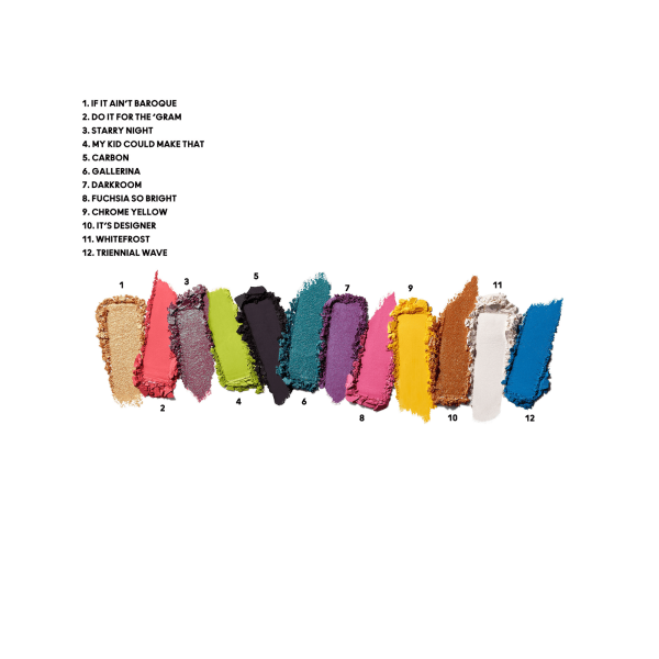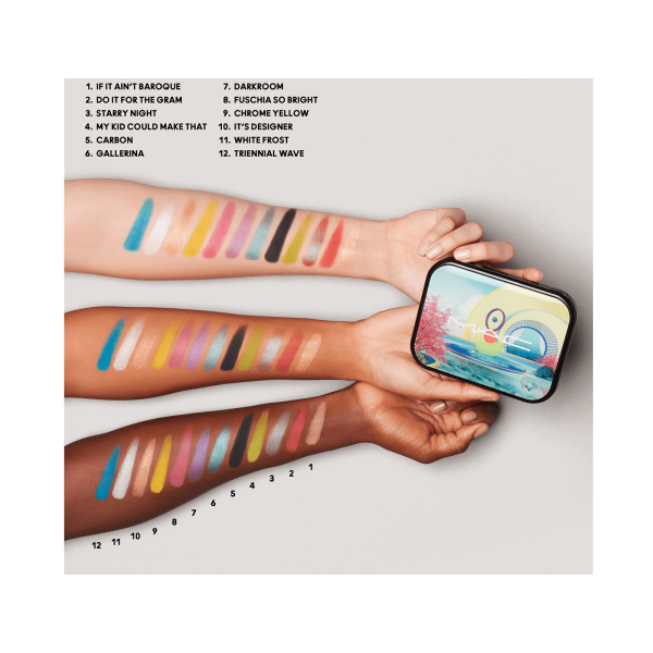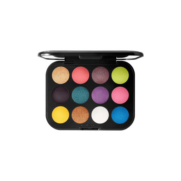 Brillos atrevidos: revitalizados. Esta paleta de sombras de ojos saturada de 12 partes presenta colores llenos de pigmentos en un solo golpe para looks ilimitados. Con una gama de neones hipnóticos y colores clásicos, esta fórmula presenta una textura ligera y suave como la seda en acabados mate, brillante, brillante y metálico. Nuestra fórmula, la primera en su tipo, se funde a la perfección en los párpados, lo que permite una aplicación, una capacidad de construcción y una mezcla sin esfuerzo a medida que personalizas tus ojos a tu manera. Nuestra sombra de ojos más pigmentada hasta la fecha está formulada con hasta un 25% más de carga de pigmento en comparación con las paletas de sombras de ojos M·A·C anteriores.BeneficiosColor lleno de pigmentos en una pasadaTextura ligera y suave como la seda.Mezcla uniforme y perfectaFormulado con hasta un 25% más de carga de pigmento en comparación con las paletas de sombras de ojos M·A·C anterioresSeguro para usuarios de lentes de contactoProbado por oftalmólogosPuede usarse mojado o secoMojado para intensificar para usar todo el día, 8 horasHúmedo para intensificar para un color resistente a las arrugas y a las manchas
