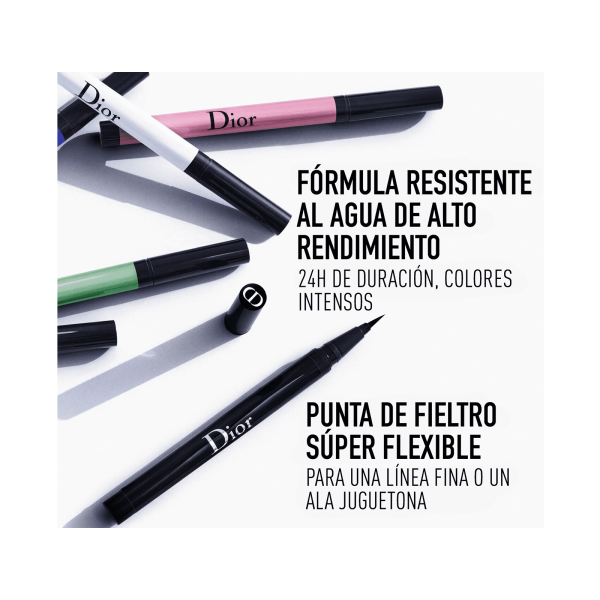 Diorshow On Stage Liner es el eyeliner rotulador Dior waterproof con una mina ultraflexible, que dibuja un trazo preciso con un grosor modulable según la presión aplicada. Su eficaz fórmula proporciona 24 horas de color intenso. Rediseñada por Peter Philips, Director Creativo y de Imagen del Maquillaje Dior, la gama de tonos de Diorshow On Stage Liner está compuesta por colores intensos y couture. El eyeliner revela así una paleta de tonos que se declinan en acabados mate, satinado y nacarado. Diorshow On Stage Liner es el aliado definitivo Dior para conseguir todos los looks de los desfiles de la Maison en un solo movimiento.BeneficiosUn color intenso durante 24 horas, una fórmula waterproof y una mina que permite un trazo preciso.