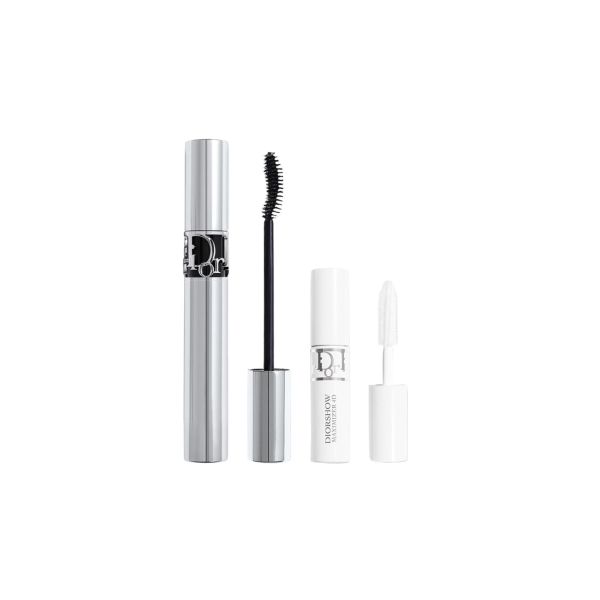 Máscara y primer - Sérum de máscara Dior reúne en este cofre de edición limitada la máscara de pestañas Diorshow Iconic Overcurl y el primer-sérum de máscara Diorshow Maximizer 4D. El estuche del cofre regalo se adorna con una decoración creada por Pietro Ruffo para Dior: un mosaico de personajes cobra vida bajo la radiante estrella de la suerte de Monsieur Dior, inspirados en el universo colorido y festivo del circo, que él tanto amaba. - Diorshow Iconic Overcurl, tono 090 Black. Esta máscara despliega y viste las pestañas con un color intenso. Enriquecida con agua floral de aciano, su fórmula ofrece una sensación de confort a la vez que contribuye a nutrir y fortalecer las pestañas. - Mini Diorshow Maximizer 4D. Este primer-sérum de máscara Dior presenta una fórmula con 4 acciones -volumen, curva, longitud y definición- para unas pestañas visiblemente sobredimensionadas. Día tras día, su aspecto mejora: parecen más lisas y más flexibles.