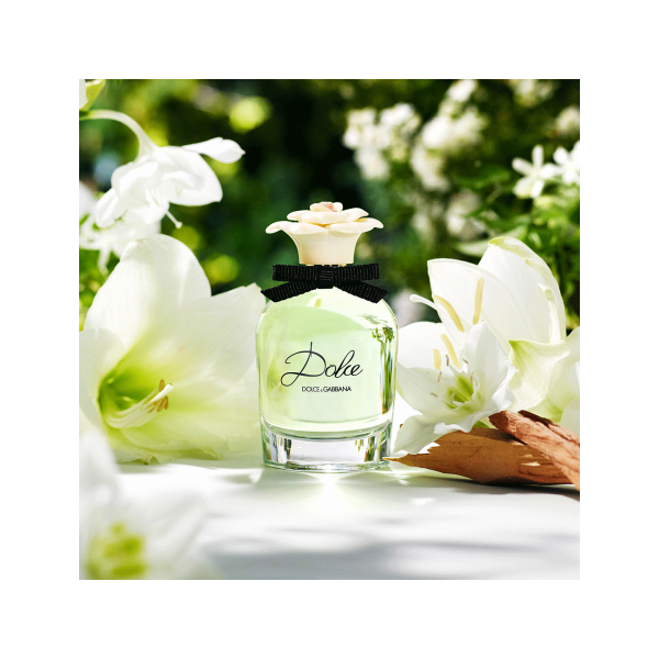Dolce Eau de Parfum de Dolce&Gabbana, con un sello floral auténtico, presenta una visión elegante del romance. Esta fragancia femenina está inspirada en la belleza legendariamente noble de Sicilia, con sus jardines colmados de frescas flores blancas. Dolce es un Eau de Parfum atemporal que combina lo mejor del glamour clásico con la innovación contemporánea. Se presenta en un hermoso frasco con un tapón que evoca las flores de mazapán expuestas en los escaparates de las pastelerías sicilianas. Dolce se abre con una explosión luminosa y vigorizante de nerolí y flor de papaya, a la vez dulce y refinada. Su pieza central es la amarilis blanca, una flor utilizada por primera vez en perfumería. Su aroma, con mucho cuerpo, ha sido capturado mediante un proceso complejo y extraordinario, como el utilizado en la elaboración de los delicados encajes de un vestido. En las notas de fondo, una sensual estela de almizcle y cashmeran deja una impresión duradera.