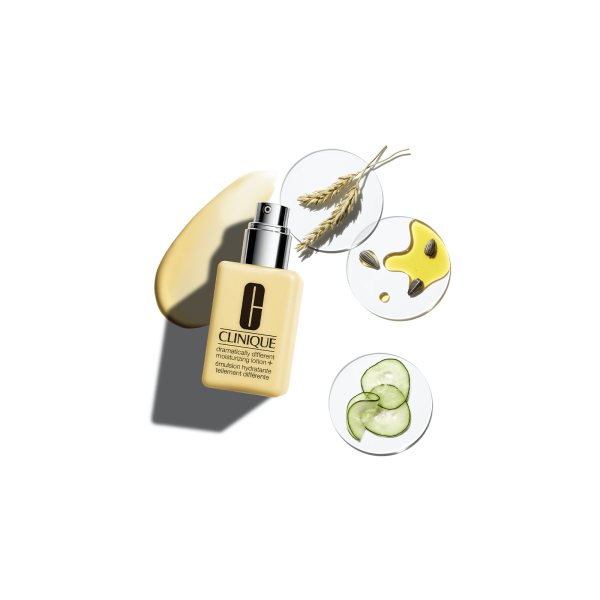 ¿Qué es?Es el Paso 3 en nuestro Sistema de 3 Pasos personalizado para el cuidado de la piel. El hidratante facial, desarrollado por dermatólogos, suaviza y mejora la piel dejando la piel saludable.¿Qué hace?El hidratante amarillo hidrata por todo el día.Se esparce fácilmente, se absorbe rápidamente.Ayuda a fortalecer la propia barrera de humedad de la piel, para que quede más hidratada.La piel que retiene más humedad luce más joven y saludable.El secreto en nuestro sistema.Nuestro revolucionario Sistema de 3 Pasos fue creado por un reconocido dermatólogo. Es simple, personalizado y toma tres minutos, dos veces al día: limpia con Facial Soap, exfolia con Clarifying Lotion, humecta con Dramatically Moisturizing Lotion+, Gel libre de aceite o Jelly ligero. Hay una rutina del cuidado de la piel Clinique perfecta para ti. Encuéntrala ahora.Nuestra filosofía de purezaSin parabenos. Sin ftalatos. Sin fragancia. Piel simplemente feliz.¿Cómo se utiliza?-Usa dos veces al día, por la mañana y noche.-Aplica en todo el rostro y cuello o donde se necesite.-La piel limpia y exfoliada acepta mejor la humectación.-Para mejores resultados, aplica después de los pasos 1 y 2 de nuestro Sistema de 3 Pasos.-Un poquito rinde mucho. Masajea una aplicación de loción en la piel, dondequiera que esté seca.Beneficios 8 horas de hidratación, fortalece la piel.En 4 horas, fortalece la barrera de humedad de la piel en un 34%.Aumenta instantáneamente la humedad de la piel en un 119%.IngredientesWater\Aqua\Eau, Mineral Oil\Paraffinum Liquidum\Huile Minérale, Glycerin, Petrolatum, Stearic Acid, Glyceryl Stearate, Sesamum Indicum (Sesame) Oil, Urea, Lanolin Alcohol, Triethanolamine, Hordeum Vulgare (Barley) Extract\Extrait D'Orge, Cucumis Sativus (Cucumber) Fruit Extract, Helianthus Annuus (Sunflower) Seedcake, Propylene Glycol Dicaprate, Sodium Hyaluronate, Butylene Glycol, Pentylene Glycol, Trisodium Edta, Phenoxyethanol, Yellow 6 (Ci 15985), Yellow 5 (Ci 19140), Red 33 (Ci 17200)