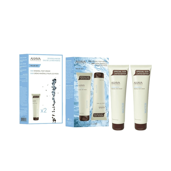 ¿Tienes que caminar distancias casi maratonianas todos los días? ¿Quizás tus pies se cansan demasiado por usar zapatos de tacón alto y empiezan a dolerte insoportablemente a medida que se acerca la noche? ¿O no estás contento con la piel áspera y escamosa de tus pies? En cualquier caso, la crema mineral para pies Ahava será tu salvadora.En caso de fatiga, este remedio relajará las piernas, proporcionándoles la tan ansiada paz y un delicioso placer. Los componentes minerales del Mar Muerto, abundantes en la composición de la crema descrita, aportarán tersura y suavidad a la piel de los pies, volviéndola sedosa, como un precioso terciopelo. La crema mineral para pies Deadsea Water hará frente fácilmente incluso a la piel más áspera y seca. El producto hidratará suavemente la piel, transformándola agradablemente.El set incluye dos cremas Deadsea Water de 150ml