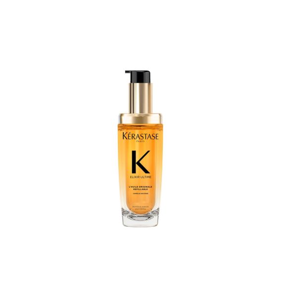 Consiéntete con el aceite capilar de lujo definitivo: Kérastase Elixir Ultime, ahora recargable. Enriquecido con los ingredientes más finos, incluyendo Camelia silvestre y Camelia francesa, cada gota es un tratamiento profundamente lujoso para todo tipo de cabello. Este icónico aceite dorado ofrece un rendimiento superior para nutrir, fortalecer y proteger profundamente la fibra capilar, creando un brillo deslumbrante incluso en el cabello más rebelde, difícil de manejar o encrespado. Ultraligero para una absorción más rápida, este elixir exquisito aporta luminosidad y un brillo radiante al cabello opaco, seco o con frizz, y actúa como protector térmico durante el peinado. Disfruta del lujo con consciencia: el frasco, elaborado con un 30 % de vidrio reciclado, y la recarga, fabricada con un 95 % de plástico reciclado*, ayudan a reducir los residuos sin renunciar a la elegancia. Sumérgete en el lujo absoluto de este opulento aceite capilar sin aclarado, delicadamente perfumado con la icónica fragancia Kérastase, y disfruta de una experiencia multisensorial que lleva el cuidado del cabello a otro nivel. Beneficios:- Aporta un brillo excepcional y duradero a tu cabello. - Suavidad instantánea, para un cabello más manejable y fácil de peinar. - Control del frizz durante 96 h y reducción del cabello rebelde para un look pulido. - Ayuda a fortalecer el cabello y prevenir el quiebre.