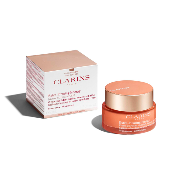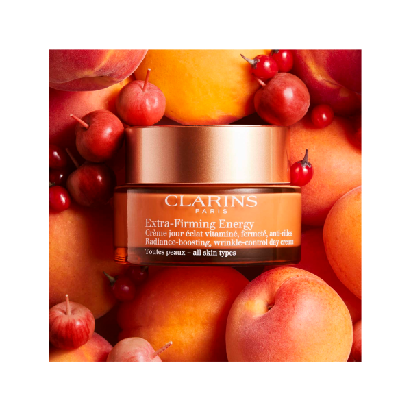 La crema reafirmante de día para mujeres a partir de 40 años, llenas de energía y que van a 100 por hora. Un tratamiento que combina toda la experiencia en firmeza Clarins con un concentrado de frutas súper-energizantes para un doble efecto: luminosidad y buena cara al instante. La piel sometida a un ritmo de vida desenfrenado pierde tono, y aparecen arrugas y signos del cansancio... Extra-Firming Energy es la respuesta para actuar sobre la firmeza de la piel a la vez que proporciona energía y un efecto radiante. Y por supuesto, gracias a su textura fundente y su perfume fresco y energizante, aporta sensorialidad y bienestar con cada aplicación.A los 40, ¡firmemente radiante!TratamientoReafirmante, Luminosidad, Anti-stress, AntiarrugasTipo de PielTodo tipo de piel