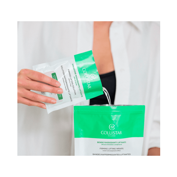 Un nuevo tratamiento profesional de uso doméstico, con una acción de alto impacto, desde la primera aplicación, sobre la pérdida de tono y flacidez de la piel de las zonas tratadas (piernas, glúteos, caderas, abdomen y brazos). Efecto lifting instantáneo Un complejo a base de plantas proporciona un efecto lifting instantáneo además de regenerar la piel con el tiempo. Una combinación de dos sales (Flor de Sal de Cerdeña y Sal Rosa del Himalaya) garantiza una acción remineralizante y desintoxicante. Efecto lifting progresivo El extracto de granada italiana hiperfermentado ayuda a preservar el colágeno y la elastina presentes de forma natural en la piel, mientras que el extracto de flor de granada y una microalga especial aumentan su producción, restaurando la Firmeza y elasticidad propias de una piel tonificada. Prácticas y cómodas Las vendas están confeccionadas con un cómodo tejido elástico y se pueden utilizar hasta 10 veces. Una acción oclusiva entrega los principios activos a las zonas tratadas, con un agradable masaje compresivo que estimula la microcirculación. Además son antigoteo y permiten total libertad de movimiento durante el tratamiento. Los resultados son visibles después de la primera aplicación de 30 minutos: las áreas tratadas quedan más suaves, pulidas y refrescantemente levantadas. Con el uso continuado, los beneficios son aún mayores y duran más tiempo: la piel se vuelve más compacta y elástica, fundamental las zonas están más firmes y tonificadas y la figura está más definida. EL KIT CONTIENE: 4 sobres de recambio desechables de 100 ml para tratamientos adicionales con Firming Lifting Wraps.
