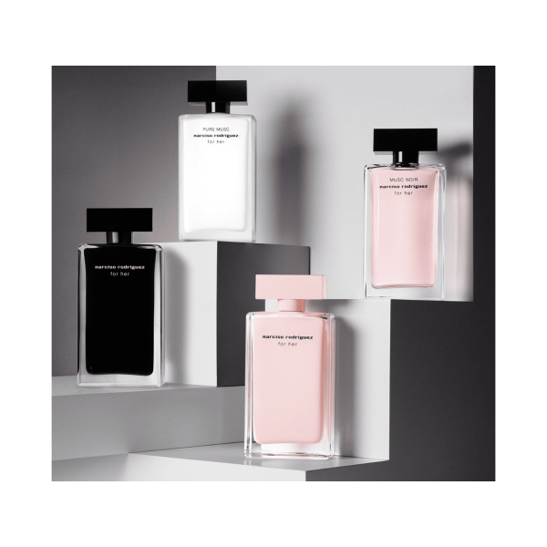For her MUSC NOIR, captura la esencia de una nueva femenidad, sensual y misteriosa.La historia de la fragancia El nuevo perfume Narciso Rodriguez, for her MUSC NOIR, rinde homenaje a la belleza interior de cada mujer Inspirada en la fragancia original for her, MUSC NOIR reinterpreta sus códigos, basándose en las facetas más oscuras e intensas de su icónica estela. Esta enigmática fragancia rinde homenaje a la naturaleza dual de todas las mujeres: un verdadero claroscuro donde la sombra y la luz se buscan en una mezcla de misterio y sensualidad extrema. El trabajo realizado con el almizcle realza el carácter adictivo de esta fragancia y es el fascinante rostro de una femenidad moderna y enigmática.Las notas olfativasLas notas de salida de ciruela jugosa seguidas de heliotropo, una flor adictiva con un aroma embriagador, aportan brillo a la fragancia. A continuación, el corazón negro y cautivador del musc construye la textura con un acorde de cuero intenso y sensual. El fondo se caracteriza por un acorde ante que da textura textura al almizcle y le aporta intensidad y profundidad.El frascoPor primera vez, su botella icónica se descubre en un juego de transparencias y aparece en su forma más pura. El perfume adquiere un tono rosado delicado y visible, haciéndose eco del original For Her . Este objeto gráfico puro deja pasar una luz increíblemente intensa y audaz, realzando la fragancia
