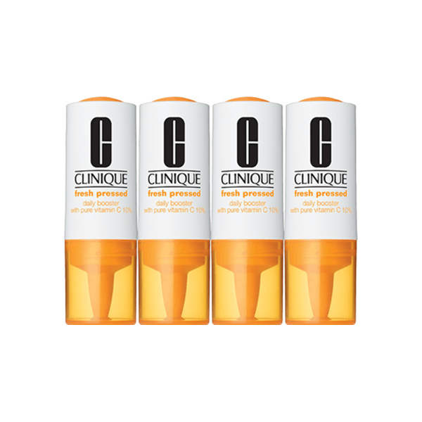 IngredientesWater\Aqua\Eau , Ascorbic Acid , Glycerin , Dimethicone , Squalane , Butylene Glycol , Dipropylene Glycol , Acetyl Glucosamine , Cucumis Sativus (Cucumber) Fruit Extract , Hordeum Vulgare (Barley) Extract\Extrait D'Orge , Morus Nigra (Mulberry) Root Extract , Molasses Extract\Saccharum Officinarum\Extrait De Mélasse , Laminaria Digitata Extract , Scutellaria Baicalensis Root Extract , Acetyl Hexapeptide-8 , Vitis Vinifera (Grape) Fruit Extract , Algae Extract , Palmitoyl Hexapeptide-12 , Palmitoyl Tripeptide-1 , Palmitoyl Tetrapeptide-7 , Alcaligenes Polysaccharides , Caffeine , Sucrose , Whey Protein\Lactis Protein\Protéine Du Petit-Lait , Betaine , Salicylic Acid , Glycine Soja (Soybean) Protein , Sodium Hyaluronate , Caprylyl Glycol , Sigesbeckia Orientalis (St. Paul'S Wort) Extract , Bis-Peg-18 Methyl Ether Dimethyl Silane , Propylene Glycol Dicaprate , Helianthus Annuus (Sunflower) Seedcake , Allyl Methacrylates Crosspolymer , Carbomer , Glyceryl Polymethacrylate , Tromethamine , Xanthan Gum , Potassium Sorbate , Peg-8 , Polysorbate 20 , Sodium Citrate , Disodium Edta , Phenoxyethanol Rds Product Name: Fresh Pressed Daily Bstr Vit C 10% Division: Cl (Clinique)Ingredients: Water\Aqua\Eau , Ascorbic Acid , Glycerin , Dimethicone , Squalane , Butylene Glycol , Dipropylene Glycol , Acetyl Glucosamine , Cucumis Sativus (Cucumber) Fruit Extract , Hordeum Vulgare (Barley) Extract\Extrait D'Orge , Molasses Extract\Saccharum Officinarum\Extrait De Mélasse , Laminaria Digitata Extract , Acetyl Hexapeptide-8 , Algae Extract , Palmitoyl Hexapeptide-12 , Palmitoyl Tripeptide-1 , Palmitoyl Tetrapeptide-7 , Alcaligenes Polysaccharides , Caffeine , Sucrose , Betaine , Whey Protein\Lactis Protein\Protéine Du Petit-Lait , Salicylic Acid , Glycine Soja (Soybean) Protein , Sodium Hyaluronate , Caprylyl Glycol , Sigesbeckia Orientalis (St. Paul'S Wort) Extract , Bis-Peg-18 Methyl Ether Dimethyl Silane , Propylene Glycol Dicaprate , Helianthus Annuus (Sunflower) Seedcake , Allyl Methacrylates Crosspolymer , Carbomer , Glyceryl Polymethacrylate , Tromethamine , Xanthan Gum , Potassium Sorbate , Peg-8 , Calcium Chloride , Polysorbate 20 , Sodium Citrate , Disodium Edta , Phenoxyethanol