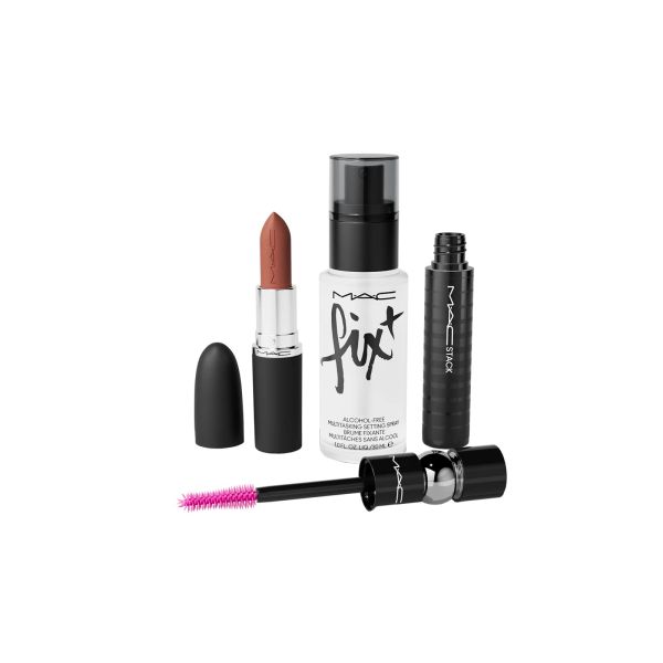 Un set de regalo de tres piezas que incluye el lápiz labial sedoso mate M·A·Cximal de tamaño completo más vendido, la máscara de pestañas M·A·CStack de tamaño completo y un spray fijador Fix+ en miniatura a un precio de estrella dorada. Adorna tus looks navideños con este set de regalo de tres superventas. Este set de regalo de edición limitada de productos imprescindibles seleccionados para ojos, labios y piel incluye el lápiz labial M·A·Cximal Silky Matte de tamaño completo en Warm Teddy, la máscara de pestañas M·A·CStack de tamaño completo y un Fix+ mini. El lápiz labial M·A·Cximal Silky Matte brinda 12 horas de color de cobertura total y ocho horas de hidratación. La máscara de pestañas M·A·CStack es una máscara de pestañas infinitamente modulable y resistente a los grumos que se acumula en infinitas capas de volumen y longitud. Fix+ / Mini M·A·C es un spray fijador hidratante apto para viajes que se puede usar con otros productos de formas casi infinitas para mejorar la duración del maquillaje o hidratar y suavizar la piel. Listo para regalar en un empaque dorado exclusivo para las fiestas a un precio de estrella dorada.