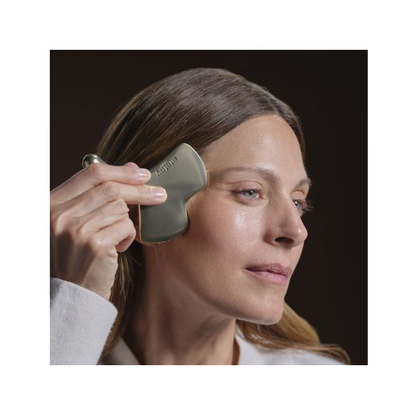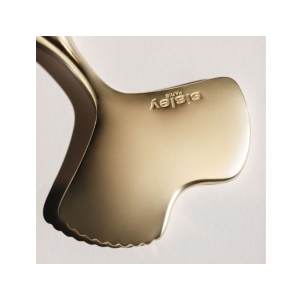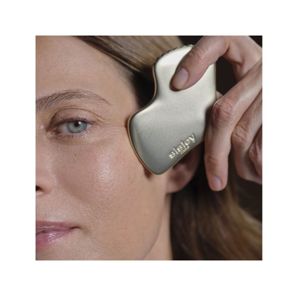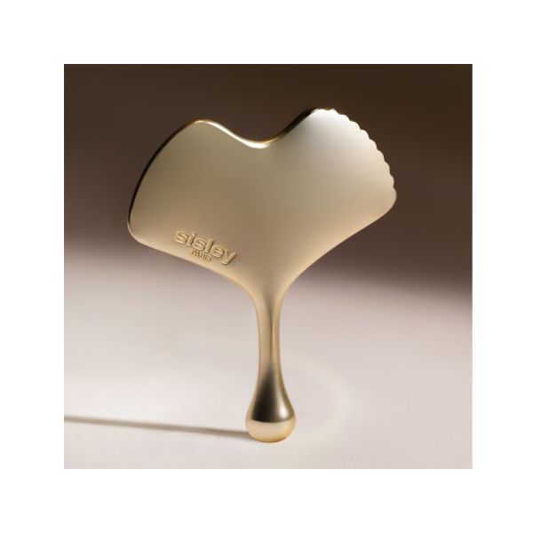 Mejora la eficacia de tu ritual de belleza con la nueva herramienta de Sisley para el cuello y rostro, el Gingko Gua Sha. Inspirado por la elegante forma de la hoja del Gingko Biloba, un ingrediente estrella en los productos Sisley, complementa el ritual antiedad de las colecciones Sisleÿa L´Interal anti-age y de Supremÿa La Nuit. Esta lujosa herramienta de masaje, hecha con el naturalmente refrigerante Zamac, esta diseñada para acompañar el ritual matinal y nocturno. Te ofrece un momento de relajación pura y bienestar, al mismo tiempo que actúa sobre diferentes signos cutáneos de envejecimiento. Creado para adaptarse perfectamente al contorno y lineas del rostro, permite realizar sencillos pero eficaces movimientos de alisado, lifting, esculpido, suavidad y estimulación.1. Movimientos alisadores Usando el lado liso del Gua Sha, masajea delicadamente todo el rostro y cuello para promover el alisamiento. Rasgos faciales aparecen más lisos y la piel se ve visiblemente más radiante.2.Movimientos lifting La parte lisa ha sido diseñada para adapatarse a las lineas faciales para conseguir un masaje con efecto lifting. La piel se ve más firme y los rasgos faciales se elevan visiblemente.3. Movimientos de esculpido El borde curvado sigue el contorno del rostro para un masaje modelador que perfila visiblemente los pómulos y la mandíbula. Los contornos del rostro aparecen redefinidos.4. Movimientos suavizantes El borde dentado masajea las arrugas y las líneas de expresión, centrándose en su núcleo para reducir su apariencia. Se alisan visiblemente.5. Movimientos estimuladores Inspirados por una técnica tradicional China, la punta esférica estimula puntos específicos del rostro. Los rasgos faciales aparecen más relajados y alisados mientras que los puntos energéticos se estimulan. Utilizar el Ginkgo Gua Sha en el rostro y cuello, por la mañana despues de la aplicación de Sisleÿa L'Intégral Anti-Âge y por la noche despues de la aplicación de Grand Soin Anti-Âge o del Grand Baume Anti-Âge Supremÿa La Nuit, siguiendo los gestos de masaje específicos.