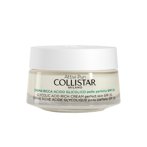 Un producto Collistar extraordinario con un ingrediente activo excepcionalmente puro y eficaz. La estructura especial de "crema rica" ha sido diseñada específicamente para • optimizar la transmisión del ácido glicólico al tejido • fortalecer el equilibrio hidrolipídico de la piel • proporcionar a la piel nutrición, elasticidad y comodidad extra. Ácido glicólico. Extraído de la caña de azúcar, el ácido glicólico es el ingrediente más utilizado por los dermatólogos para los tratamientos de peeling. Cuando se aplica sobre la piel, libera la superficie de la piel de las "células muertas" que le impiden respirar y ralentizar la renovación de las células de la piel. Para que el tratamiento sea lo más eficaz, tolerable y seguro posible, los investigadores de Collistar han ajustado la concentración de ácido glicólico y el pH y han añadido mandélico, Ácido glucónico y lactobiónico que tienen una acción exfoliante gradual y no agresiva. Para que la crema sea totalmente eficaz y segura, la fórmula se ha enriquecido con Pentavitin®, un complejo de azúcares naturales que tiene un efecto extremadamente hidratante ; Extracto de Zanthoxylum bungeanum, una planta utilizada en la medicina china como medicamento calmante; UV-A y Filtros UV-B. El resultado de la acción combinada de todos estos ingredientes es un perfecto tratamiento de la piel, que día a día estimula la renovación celular de la piel y la renueva, ayudando a restaurarla a la perfección. Sin perfume, alcohol ni colorantes. Tratamiento Hidratación, Nutricion,Prevencion de edad, ReafirmanteTipo de pielMadura, Normal, Seca, Grasa, Mixta, Sensible