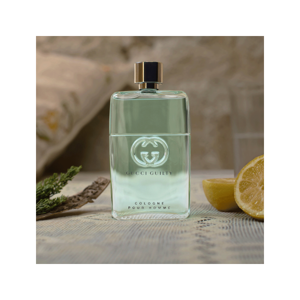 Una reinterpretación moderna de una colonia clásica, un aroma italiano de hace siglos, Gucci Guilty Cologne es creado con un secado contemporáneo acompañado de notas de maderas nobles y cítricos potentes. Notas Bergamota, Romero, Ciprés español, Violeta, Pachulí y Madera de cedro Familia de fragancias Amaderados