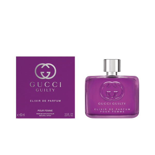 Gucci Guilty Elixir de Parfum Pour Femme es una poderosa invitación al amor y a la autoaceptación. La fragancia tiene un aroma a cuero y ámbar que incluye exquisito pachulí, el ingrediente exclusivo de Gucci Guilty, amplificado en concentración para un mayor impacto. Este eau de parfum se presenta en un frasco de colores brillantes, creado para reflejar la versión para mujer en su elegante simetría.Tipo de FraganciaFlorales, Calidos & especiadosNotasNotas de salida: Violeta, Mandora y Bergamota Notas de corazón: Glicinia, Rosa y Osmanto (olivo oloroso)Notas de fondo: Haba Tonka, Pachuli y Vainilla.