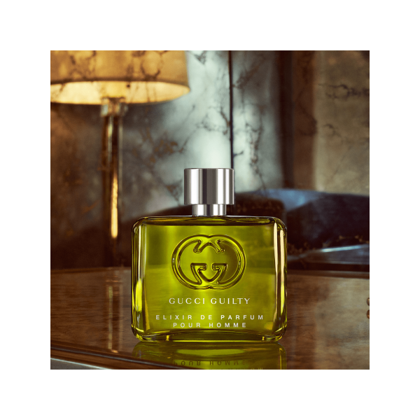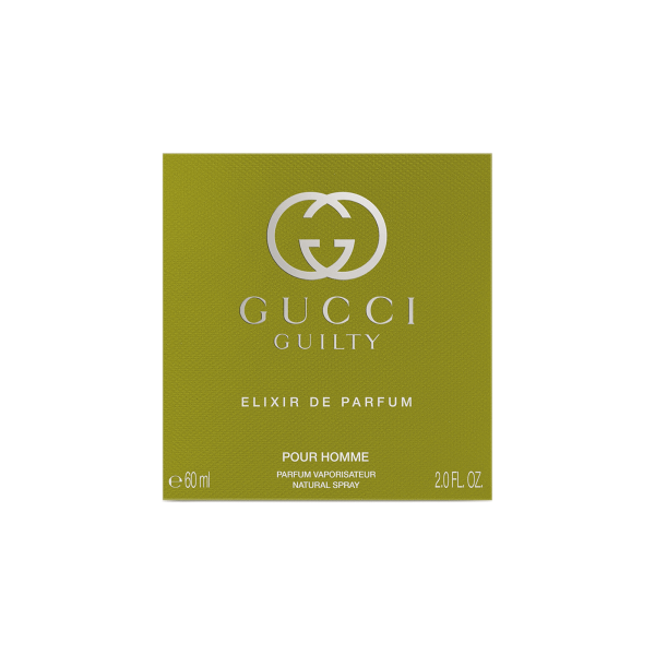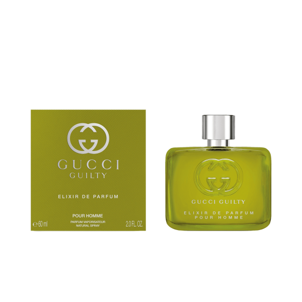 Gucci Guilty Elixir de Parfum Pour Homme una poderosa invitación al amor y a la autoaceptación. La fragancia tiene un aroma floral y ambarino que desprende una energía y un encanto refrescantes, lo que realza las notas distintivas de Gucci Guilty. Este eau de parfum se presenta en un frasco de colores brillantes, creado para reflejar la versión para hombre en su elegante simetría.Tipo de FraganciaCalidos & especiados, AmaderadosNotasNotas de salida: acordes de zarzamora, esencia de naranja dulce y acordes de coco Notas de corazón: flor de azahar del naranjo, raíz de lirio y osmanto (olivo oloroso)Notas de fondo: esencia de pachulí, almizcle y ramín.