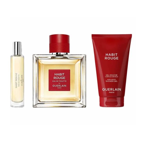 REGALOS ICÓNICOS EN EDICIÓN LIMITADA Ofrécele la elegancia y la audacia de Habit Rouge. Este set de regalo incluye:- Habit Rouge Eau de Toilette (100 ml y un tamaño de viaje de 10 ml), la primera fragancia masculina ambarina con las inconfundibles notas de salida de lima y naranja amarga. Su corazón picante y sofisticado, calentado por el pachulí, reposa sobre una base donde el cuero se suaviza bajo la caricia cremosa de la benjuí y la vainilla con un toque rebelde. - Habit Rouge Shower Gel (75 ml), con su textura vigorizante, le da a la piel el aroma inimitable de Habit Rouge. CÍTRICOS AMBARIZADOSUn ámbar que alterna entre cítrico, cálido y acentuado con vainilla, expresa el genio del contraste y las emociones bien dominadas.