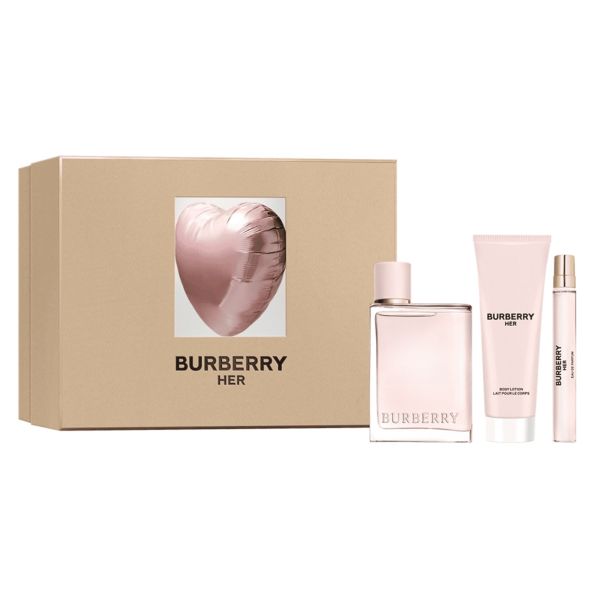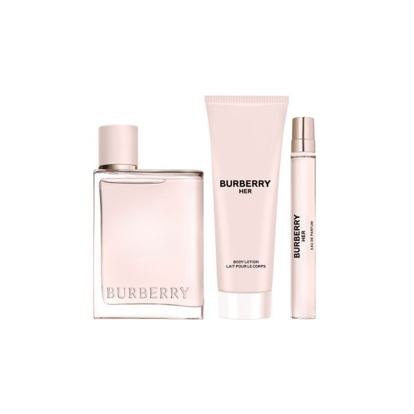 Burberry Her - Set de regalo de 3 piezas para mujerSumérgete en el espíritu audaz y juvenil de Burberry Her Eau de Parfum, una fragancia emblemática para mujeres modernas que irradian energía y confianza. Esta irresistible fragancia se abre con una explosión de jugosas bayas rojas y negras, combinadas con cítricos para una entrada vibrante. Un delicado corazón floral de violeta y jazmín da paso a una cálida y sensual base de almizcle, vainilla, ámbar y notas amaderadas. Este set incluye un Eau de Parfum Burberry Her de 95 ml, la primera fragancia gourmand ambarada y afrutada de la casa. Un aroma cautivador con aromas británicos únicos, acompañado de la loción corporal perfumada a juego y un espray de viaje compacto, ideal tanto para el día como para la noche. Sofisticada, llena de energía, optimista, aventurera y audaz, esta fragancia de Burberry encarna la esencia de Her en el regalo perfecto para celebrar. La fragancia se abre con una irresistible mezcla de notas de frutos rojos y oscuros, realzada por los luminosos matices amaderados del jazmín blanco y la violeta, dejando tras de sí una estela de deliciosos aromas gourmand afrutados. Notas:- Notas de salida: grosella negra, arándano, frambuesa. - Notas de corazón: acorde de jazmín, acorde de violeta. - Notas de fondo: maderas blancas, almizcle, ámbar seco. Este juego de regalo de 3 piezas incluye:- Burberry EDP (100 ml) - Spray de viaje de 10 ml- Loción corporal de 75 mlPerfecto para regalar o para mimarse personalmente, Burberry Her es el máximo lujo cotidiano: vibrante, elegante e inolvidable.
