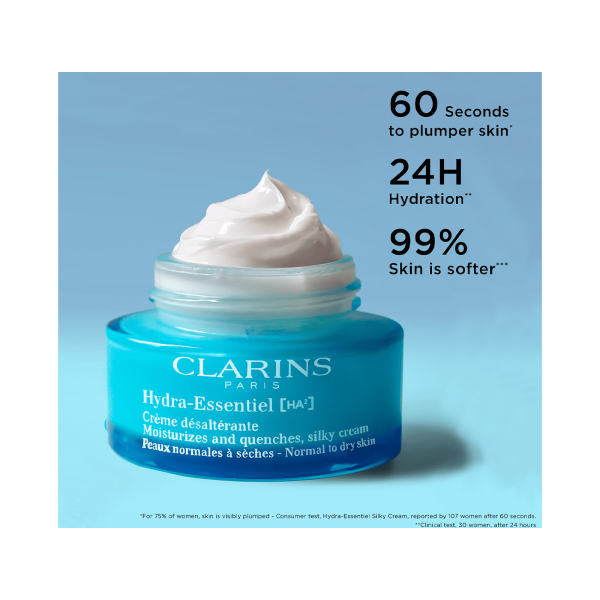 La crema facial sedosa e intensamente hidratante brinda un impulso de humedad para obtener resultados inmediatos y duraderos: piel más tersa en solo 60 segundos* e hidratación las 24 horas.** La textura fresca y sensorial se funde para una piel que se siente suave, tersa y radiante y perfectamente hidratada.El complejo anticontaminación a base de plantas de Clarins elaborado con Nipplewort, Furcellaria y Organic White Marrubio, ayuda a minimizar los efectos del envejecimiento de la piel de los agresores ambientales y la contaminación, incluidas las luces azules de los productos electrónicos.Tipo de pielSeca, Normal¿Cómo usar?Usar cada mañana.