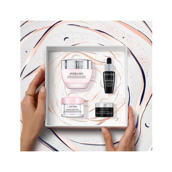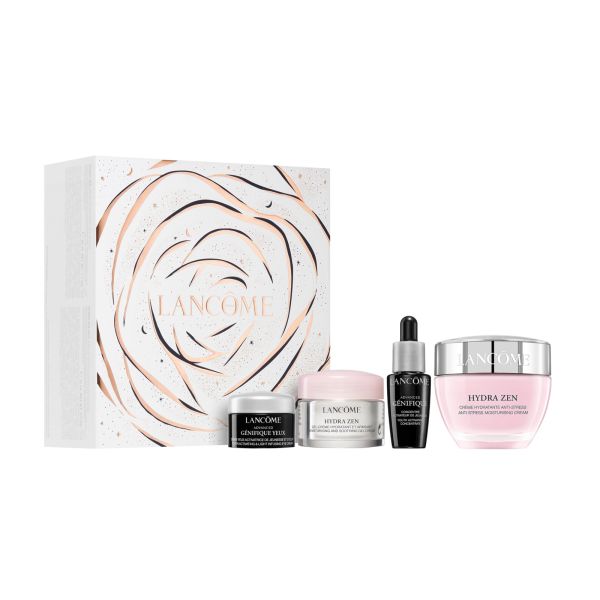 Set de regalo Lancôme Hydra Zen Cream y Advanced Génifique En esta temporada navideña, Lancôme y Le Louvre se han asociado. Cuando el arte y la belleza se encuentran, surge lo extraordinario. Debajo de la icónica pirámide, descubre la colección de regalos de Lancôme y ofrece una pieza única de magia a tus seres queridos. Elaborada en una lujosa caja de regalo de edición limitada, diseñada para reinventar la rosa de Lancôme bajo la magia de la noche. Regala lo extraordinario con Lancôme x Louvre. Este set de regalo incluye los siguientes productos de belleza favoritos: - CREMA HIDRATANTE HYDRA ZEN 50ML - CREMA DE NOCHE HYDRA ZEN 15ML - SERUM GÉNIFIQUE AVANZADO 10ML - CREMA DE OJOS GÉNIFIQUE AVANZADA 5ML