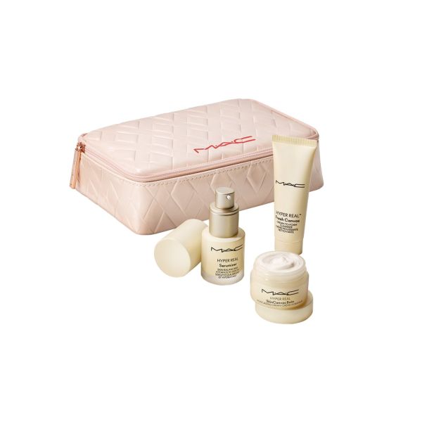 Set de cuidado facial exclusivo para regalar en Navidad, incluye 3 miniaturas de cuidado facial radiante Hyper Real™ y un neceser de maquillaje de colección. Para esa amiga que adora viajar... pero siempre se olvida de cuidarse. Consigue una piel radiante y lista para el maquillaje con el poder de Hyper Real™ Radiant Skincare. Este set de cuidado facial de edición limitada, ideal para regalar, incluye nuestro sérum hidratante y equilibrante Hyper Real Serumizer™, la crema hidratante Hyper Real SkinCanvas Balm™ y el limpiador en crema-espuma Hyper Real™ Fresh Canvas. Listo para regalar y llevar a todas partes en una exclusiva bolsa de viaje, perfecta para estas fiestas. ¡Y con un valor M·A·Cnificent! HYPER REAL SERUMIZER™- Aplicar dos veces al día, tanto en la mañana como en la noche como parte de tu rutina de skincare de Hyper Real™.- Dosifique 1 - 2 pumps directamente en la yema de los dedos o utiliza nuestra brocha “001 Serum+Moisturizer” para aplicar uniformemente sobre la piel recién lavada en lugar del sérum y crema hidratante. - Utiliza nuestra técnica “Petal-Press” para aplicar la fórmula presionando suavemente la piel hacia arriba y hacia fuera. HYPER REAL SKINCANVAS BALM™- Aplicar dos veces al día, tanto en la mañana como en la noche como parte de tu rutina de skincare de Hyper Real™.- Aplica la cantidad deseada de producto directamente sobre la yema de los dedos o utiliza nuestra brocha “001 Serum+Moisturizer” para aplicar uniformemente sobre la piel recién lavada. - Utiliza nuestra técnica “Massage-Melt” para aplicar la fórmula masajeando gentilmente de forma circular. - Evita la zona de los ojos. Todos Los Beneficios- Maquillaje listo para regalar- Packaging navideño exclusivo, ya envuelto.