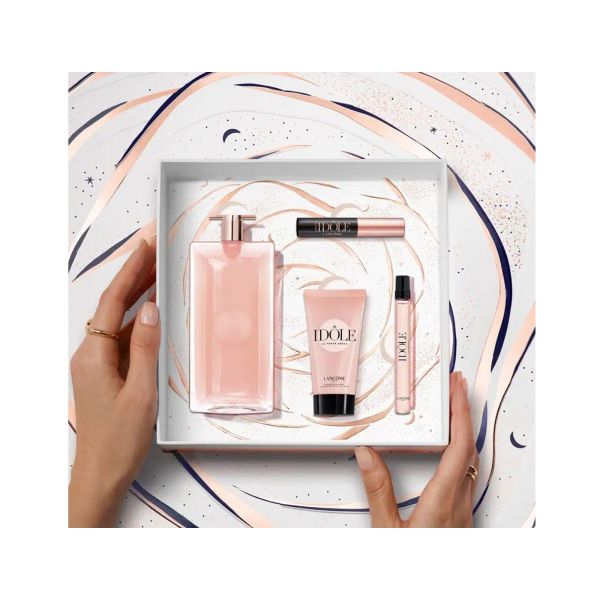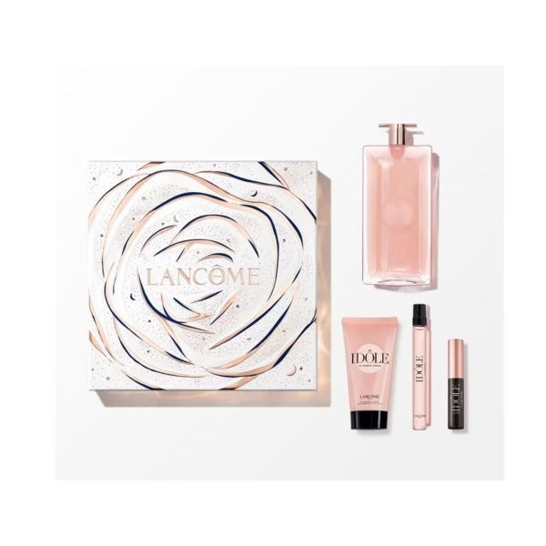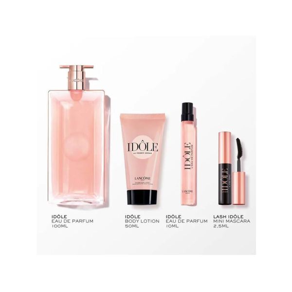 Set Idôle EDP 100ml Deléitate con la exquisita fragancia de Ladies Idole de Lancôme, un lujoso set de regalo de fragancias perfecto para la mujer contemporánea. Este perfume es una cautivadora mezcla de aromas seductores que encarnan la elegancia y la feminidad. Experimente las vigorizantes notas de salida de refrescante bergamota, jugosa pera y atractiva pimienta rosa. Estos vibrantes aromas despiertan los sentidos, abriendo paso a las notas de corazón de romántica rosa y dulce jazmín. Las notas de fondo de almizcle blanco, cremosa vainilla, exótico pachulí y terrosa madera de cedro envuelven la fragancia, dejando una huella imborrable. El set de regalo Ladies Idole de Lancôme incluye un Eau de Parfum de 100 ml, un práctico frasco de viaje de 10 ml, una crema nutritiva Power Cream de 50 ml y una máscara de pestañas Lash Lifting Noir de 2,5 ml. Es el regalo perfecto para un ser querido o un capricho para ti. Déjate seducir por el encanto de Ladies Idole de Lancôme y deja que su encantador aroma ilumine tu día a día. Este set incluye: - Idôle Eau de Parfum 100 ml - Idôle Body Lotion 50 ml - Idôle Eau de Parfum 10 ml - Lash Idôle Mini Mascara 2.5 ml