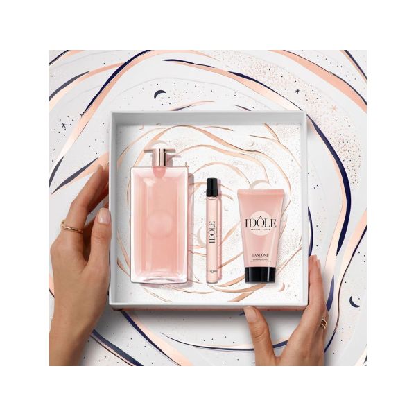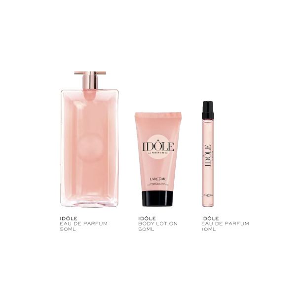 La caja de regalo Lancome Idole Eau de Parfum es para mujeres con grandes sueños. Una nueva generación de mujeres que están surgiendo en el mundo en sus propios términos. Fuerte. Atrevido. Valiente. Lleno de confianza. Idôle es para los líderes del mañana que se atreven a apuntar a las estrellas y mirar más allá del horizonte. A los nuevos ídolos que están abriendo camino a otros. Es hora de ser tu propio Idôle. Idôle Eau de Parfum es una combinación única de rosa, jazmín y chipre. Una fragancia limpia y radiante que resalta el resplandor de la mujer y complementa su brillo. La caja de regalo contiene: - Idôle Eau de Parfum 50 ml - Idôle 10 ml (un tamaño perfecto para el bolso) - Idôle La Power Creme 50 ml.