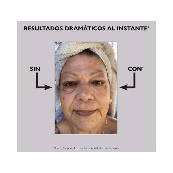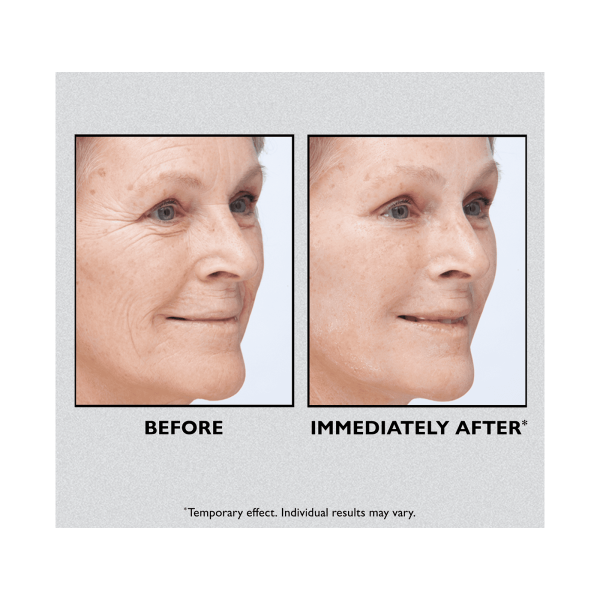 ¡Este tratamiento facial de solución rápida proporciona resultados temporales instantáneos con beneficios antienvejecimiento a largo plazo! La fórmula única ayuda instantáneamente a tensar, reafirmar y suavizar la apariencia de los puntos problemáticos que revelan la edad, minimizando temporalmente la apariencia de líneas finas, arrugas profundas y poros. *Efecto temporal.