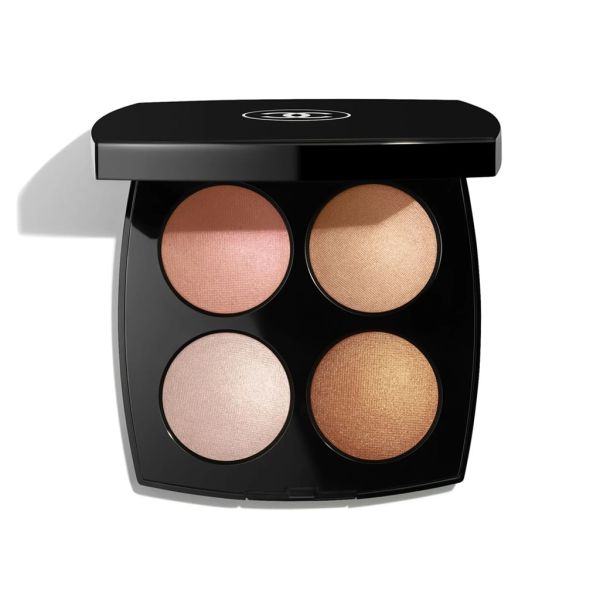 Una paleta de edición limitada que incluye cuatro luminosos tonos de polvos satinados: un coral rosa brillante, un dorado rosado, un plateado rosado brillante y un dorado cobre brillante. Diseñados para iluminar el rostro, los ojos y el escote con un suave resplandor, los tonos pueden usarse solos, en capas con un segundo color o combinados para una luminosidad inigualable y una variedad de efectos.