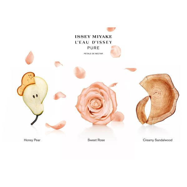 Con Pétale de Nectar, L’Eau d’Issey Pure se convierte en un jardín de flores teñidas por el alba, meciéndose en la fresca brisa marina del sensual acorde de ámbar gris y cashmeran, sello distintivo de la trilogía.