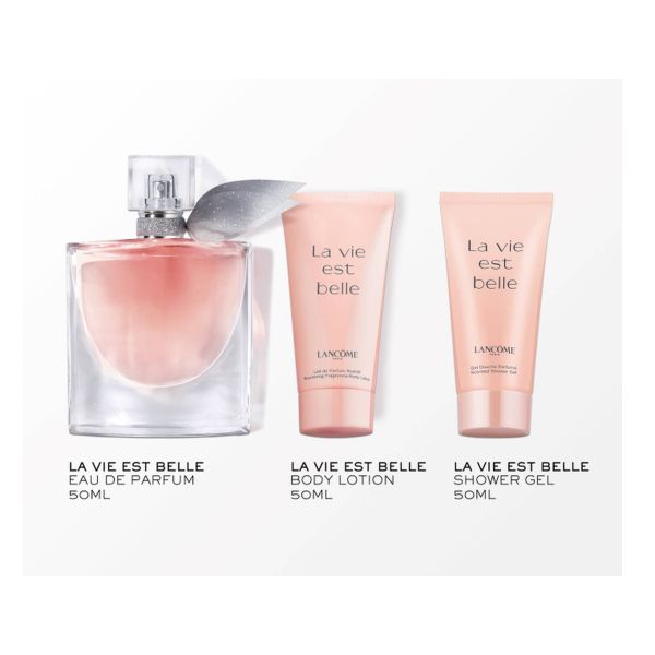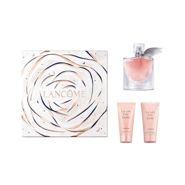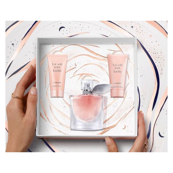 Embarquémonos hacia una noche de maravillas. Elige el regalo más valioso con Lancôme. LO QUE HAY DENTROPara esta Navidad, Lancôme ha diseñado un cofre de regalo de edición limitada. Un diseño sofisticado y lujoso que reinventa la rosa de Lancôme bajo la magia de la noche. Este estuche de regalo incluye los siguientes productos favoritos de belleza: - LA VIE EST BELLE EAU DE PARFUM 50ML - LA VIE EST BELLE LOCIÓN CORPORAL 50ML - LA VIE EST BELLE GEL DE DUCHA 50ML Esta Navidad, regala lo extraordinario con Lancôme x Louvre. LO QUE HACE LA DIFERENCIA Estas Navidades, Lancôme y el Louvre se han asociado. Cuando el arte y la belleza se encuentran, se desarrolla lo extraordinario. Bajo la icónica pirámide, descubre la colección de regalo de Lancôme y ofrezca una pieza única de magia a sus seres queridos. LO QUE DEBES SABER LA VIE EST BELLE, LA FRAGANCIA DE LA FELICIDAD. La vida es lo que tú haces de ella, así que hazla bella con La Vie Est Belle, la icónica fragancia femenina de Lancôme. Un bouquet floral gourmand encapsulado en una sonrisa de cristal. Mezcla de los ingredientes más nobles, La Vie Est Eelle es una fragancia inolvidable.