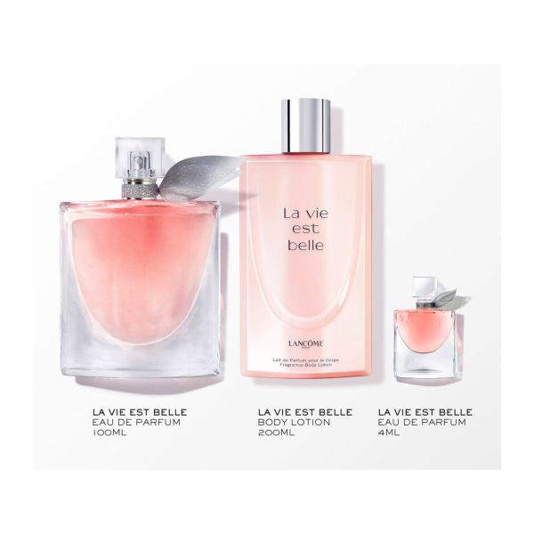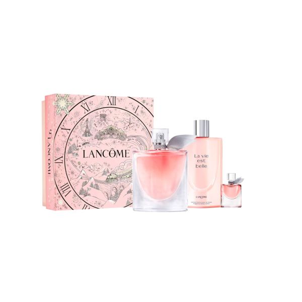 Caja de Edición Limitada La Vie Est Belle 100ml En estas fiestas, embárcate en un viaje extraordinario desde París hasta la Felicidad, el destino de nuestra marca desde 1935, y celebra 90 años de magia. Lancôme presenta una colección de regalo especial diseñada por la artista francesa Safia Ouares en el icónico rosa Lancôme. Al dar la medianoche, el Lancôme Express inicia su legendario viaje por Francia, llevando el espíritu navideño a un paisaje encantador: un festival de regalos en un mundo mágico de maravillas, celebrando el viaje más inolvidable del año. Cada estuche de regalo revela una joya de belleza para que brilles con luz propia en estas fechas. Esta caja incluye:- La Vie Est Belle EDP 100ml- La Vie Est Belle Loción Corporal 200ml- La Vie Est Belle EDP 4ml