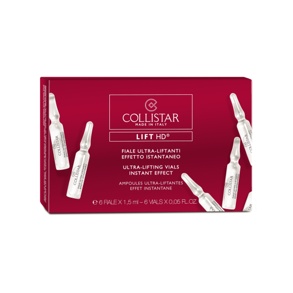 Las conocidas ampollas efecto lifting de Collistar tienen ahora una acción más potente gracias al nuevo y exclusivo Lift HD® Complex. Ideales como tratamiento de choque antes de una velada importante o cuando el rostro presenta un aspecto cansado y marcado, relajan los rasgos como por arte de magia, atenúan al instante los signos del estrés y del cansancio, y mantienen la luminosidad del rostro durante horas. Gracias a su textura especial, forman una película elástica imperceptible sobre la epidermis y “estiran” el rostro con un efecto lifting instantáneo de larga duración. Los tejidos cutáneos se benefician también de un rico combinado de principios activos que proporciona al rostro vitalidad y tonicidad, dándole un aspecto más firme.TratamientoAnti-stress, Luminosidad, ReafirmanteTipo de PielTodo tipo de Piel