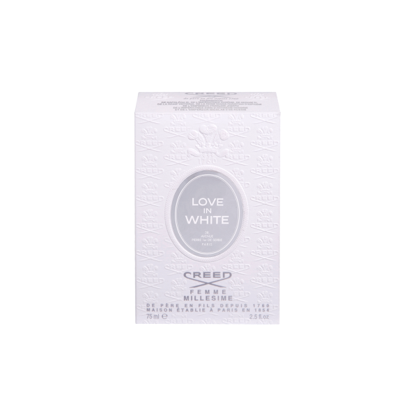 Puesta y disfrutada, no sólo por una, sino por dos de las Primeras Damas de los Estados Unidos, Love in White evoca a las mujeres más famosas e influyentes de América. Ha sido la primera fragancia de Creed que ha sido lanzada primero en los Estados Unidos y después en Francia. En la noche del 16 de noviembre de 2005, las luces exteriores del Empire State Building se volvieron en blanco puro en honor del debut de Love in White. La fragancia toma su nombre del amor de navegar del Sr. Creed.