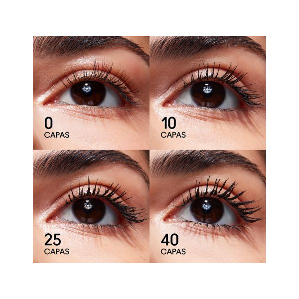 Presione el cepillo sobre las pestañas cerca de las raíces y muévalo desde la raíz hasta las puntas. Continúe apilando la fórmula resistente a los grumos para lograr un potencial de volumen infinito.