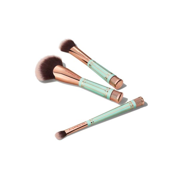 Realza su rutina GRWM con las brochas de las que querrán presumir en la pantalla. Refresca su kit con este set de regalo de tres brochas fundamentales de tamaño estándar para ojos y rostro. Este lujoso trío de herramientas de calidad profesional de edición limitada incluye 143S Bronzer Fan Brush, 159S Synthetic Duo Fibre Brush y 217S Blending Brush. Listo para regalar en un neceser acolchado en color menta exclusivo para las fiestas a un precio M·A·Cnífico. Un set de regalo exclusivo para las fiestas con tres brochas de tamaño estándar en un neceser de recuerdo a un precio M·A·Cnífico. El set de regalo incluye:- Brocha 1: Brocha de abanico para bronceador 143S- Brocha 2: Brocha de colorete de fibra sintética 159S- Brocha 3: Brocha sintética 217S- Bolsa de recuerdos