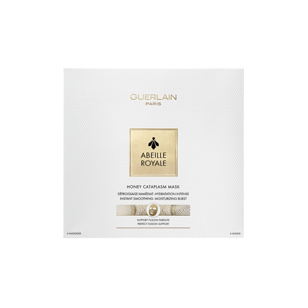 Inspirada en los vendajes de miel, la mascarilla Honey Cataplasm Abeille Royale de Guerlain es una mascarilla cataplasma de última generación; se adhiere perfectamente a la piel y se adapta al contorno facial. El resultado: la piel se alisa al instante*, las arrugas y las líneas de expresión disminuyen visiblemente*, el rostro tiene un aspecto más descansado, la piel queda hidratada y redensificada. La piel está más luminosa**. Prueba instrumental, 16 mujeres **Valoración clínica realizada con la colaboración de 32 mujeresFraganciaUn néctar soleado firmado por Thierry Wasser, nariz de la Maison Guerlain : notas de miel, frescas y ligerasIngredientesContiene una serie de productos de la abeja rigurosamente seleccionados: miel de la isla de Ouessant, miel de Córcega, miel de trébol de Nueva Zelanda y una jalea real exclusiva de Guerlain recolectada en Francia.Miel de Ouessant A 18km de las costas bretonas continentales, la isla de Ouessant, reserva de la UNESCO, forma un ecosistema libre de pesticidas y parásitos. La abeja negra que la habita produce una miel de propiedades excepcionales. Por su riqueza en aminoácidos, contenido de oligoelementos y alto índice de glucosa, proporciona los componentes esenciales que intervienen en la reparación de los tejidos.Jalea Real exclusiva La jalea real es la sustancia más preciada de la colmena. Además de un alimento para la reina de las abejas, es un alimento rey para las células de la piel. Guerlain ha desarrollado su cadena de suministro de Jalea Real exclusiva a fin de garantizar su calidad y pureza. Esta Jalea Real exclusiva es un nutriente de excepción, un concentrado natural de glúcidos, proteínas, lípidos y vitaminas. Cultivada en un entorno preservado, posee unas propiedades para la piel excepcionales.TratamientoReafirmante, Prevención de edad, Antiarrugas, LuminosidadTipo de PielPiel normal, Piel seca, Piel grasa,Piel mixta, Piel sensible, Piel madura