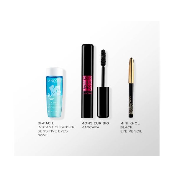 Celebremos la noche más mágica del año bajo el extraordinario destello de la nieve en París. Para estas fiestas, Lancôme presenta un kit de maquillaje de regalo diseñado por la artista francesa Safia Ouares. Cada estuche desvela una joya de belleza para hacerte brillar durante toda la temporada festiva. Este kit de maquillaje para ojos incluye tus productos de belleza favoritos: -MÁSCARA DE PESTAÑAS MONSIEUR BIG TAMAÑO COMPLETO - BI FACIL EYE 30ML - KHOL EYE PEN MINI 027 NOIR.