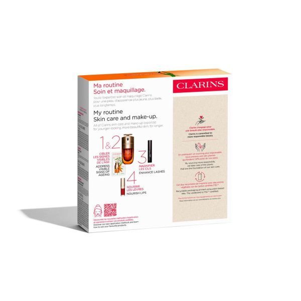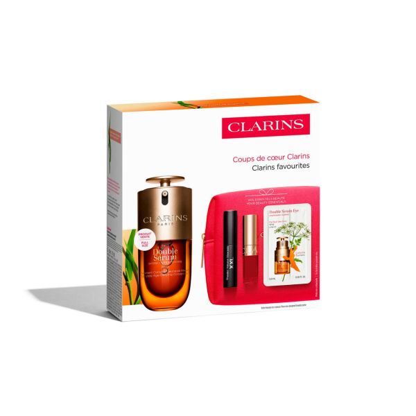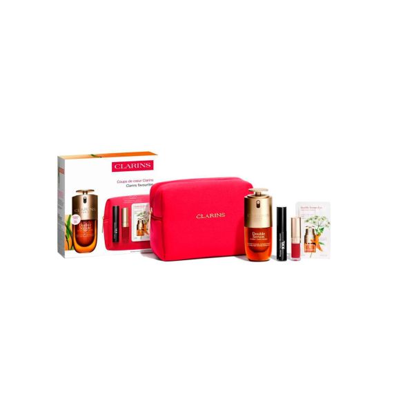 Clarins ha reunido lo mejor de su experiencia en cuidado de la piel y maquillaje en un set de edición limitada para que todas las madres luzcan una piel más joven y hermosa. Double Serum y Double Serum Eye combaten los signos visibles de la edad en el rostro y el contorno de ojos. Wonder Volume Mascara realza las pestañas y la mirada. El icónico Lip Comfort Oil aporta color e ilumina los labios, a la vez que los cuida con su fórmula hidratante y nutritiva.Tipo de piel: Normal, Grasa, Mixta, Seca¿Qué lo hace tan especial?- Volumen de las pestañas. - Labios nutridos y realzados. El set incluye:- Double Serum 30 ml- Wonder Volume Mascara XXL 3 ml- Lip Comfort Oil 03 1,4 ml- muestra de Double Serum Eye (0,9 ml) - Un estuche Rojo Clarins.
