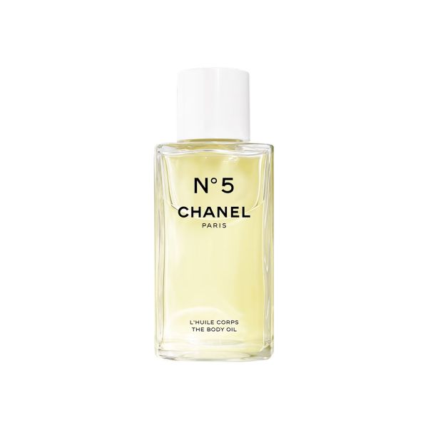 Una presentación majestuosa en un frasco de cristal con líneas radicales, N°5 L’Huile Corps deleita los sentidos gracias a su textura sedosa y sutilmente perfumada. Un gesto de perfumado generoso, diseñado para sublimar el bouquet floral aldehídico de N°5. Composición: Inspirado en la armonía sedosa de rosa y de jazmín que compone N°5, el aceite para el cuerpo ha sido formulado para expresar con delicadeza la sensualidad del bouquet floral de N°5. Compuesto por un 84% de ingredientes de origen natural*, N°5 L’Huile Corps hidrata la piel y le confiere un aspecto nutrido y satinado.