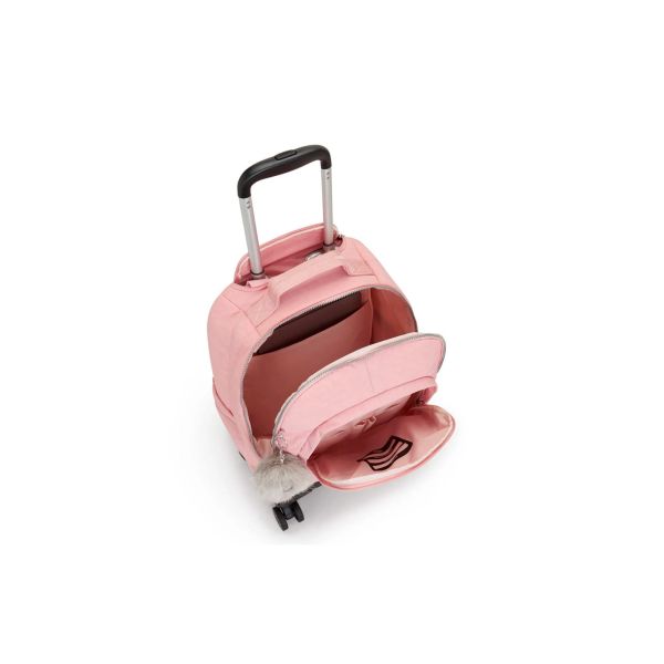 La mochila con ruedas Zea de Kipling tiene todo para la mejor organización, cuenta con funda para laptop, dos bolsillos internos, múltiples bolsillos externos y prácticos compartimentos. Se puede llevar como mochila con sus correas ajustables o desplazarla con sus ruedas y bastón. Especificaciones:- Color: Rosa- Material: Nylon- Uso: Escolar, Trabajo, Casual- Rueda: Sí- Colección: BTSCaracterísticas:- Asa superior- Bastón de maleta- Correas ajustables de mochila- Compartimento principal con cierre- Compartimento para laptop de hasta 15"- Bolsillo frontal con cierre- Cuatro ruedas giratorias- Llavero de mono de Kipling- Material: 100% Nylon- Dimensiones: 35 cm de base x 50 cm de altura x 21 cm de profundidad