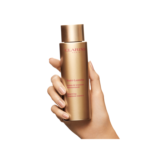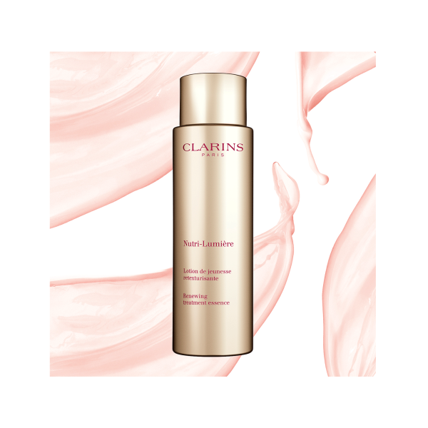 Innovación Nutrición & Luminosidad Clarins. El primer tratamiento diario indispensable para una piel llena de vitalidad. Esta loción suave y untuosa impregna perfectamente la piel y la prepara para obtener el máximo beneficio de los tratamientos aplicados posteriormente. Se utiliza sobre rostro y cuello por la mañana y por la noche, después de desmaquillar y limpiar la piel.TratamientoNutrición, LuminosidadTipo de PielTodo tipo de piel